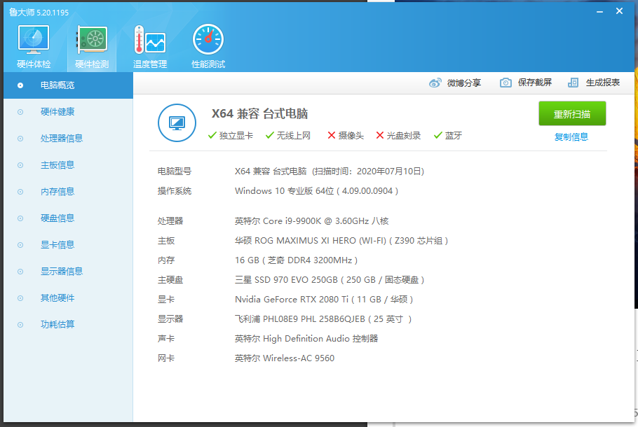 xihuheyi 发表于 2020-7-10 17:46 电脑型号 X64 兼容 台式电脑 (扫描时间:2020年04月08日) 操作系统 Windows 10 64位 ( DirectX 12 )